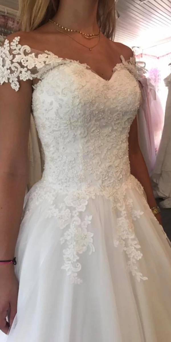 Élégante robe de mariée princesse en dentelle et tulle.