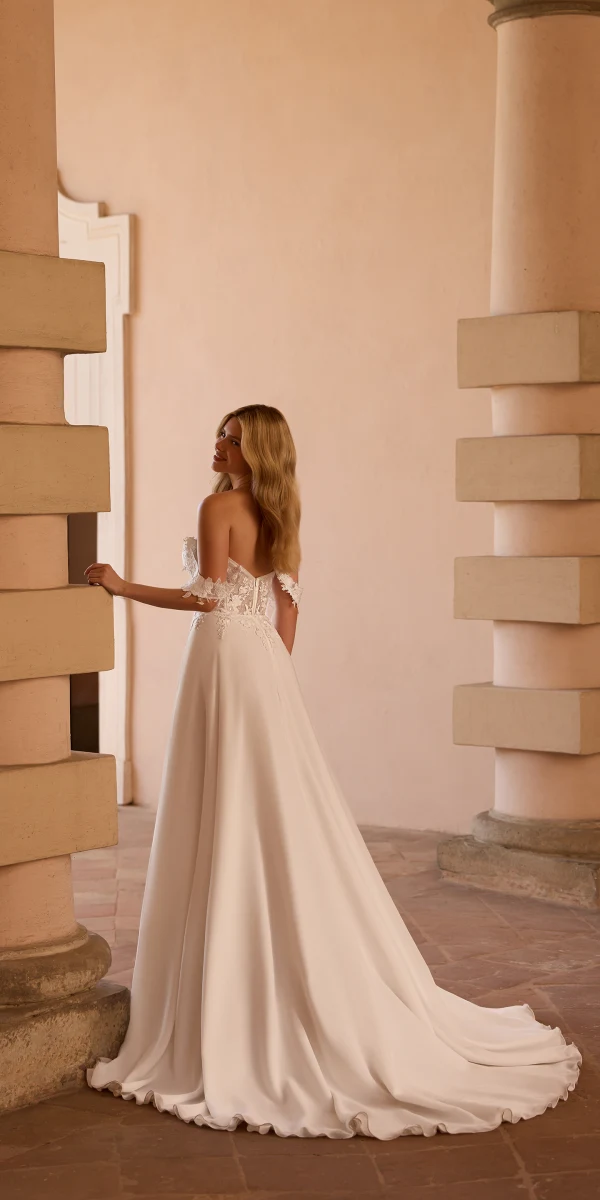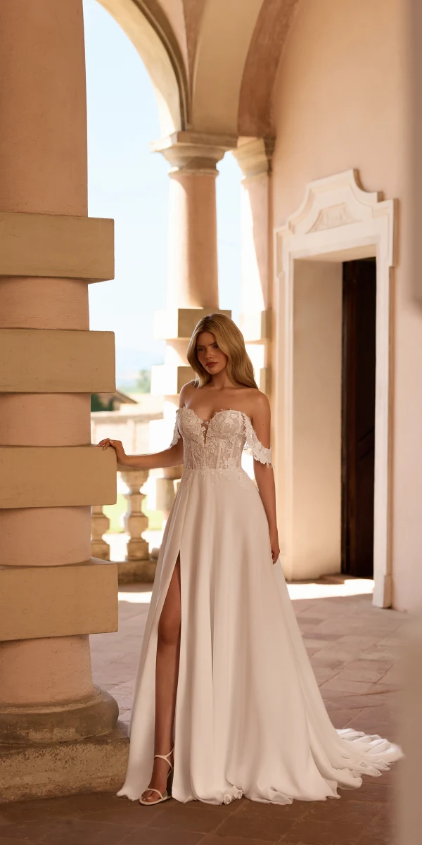 Vous pourrez retrouver cette robe lors de votre essayage en boutique. L'essayage est le meilleur moyen de confirmer votre coup de cœur.